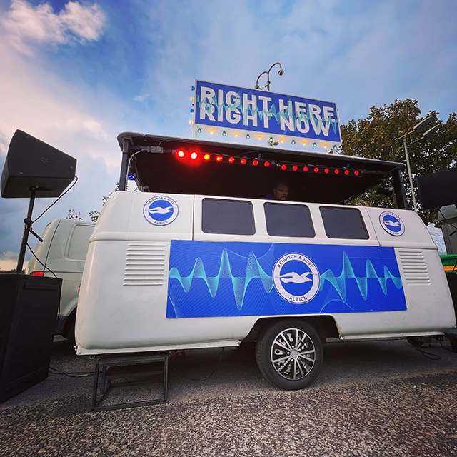 Our local Premiership football team, Brighton & Hove Albion hire our DJ van as their lucky mascot at their home games creating an electric atmosphere as attendees enter the fan zone.